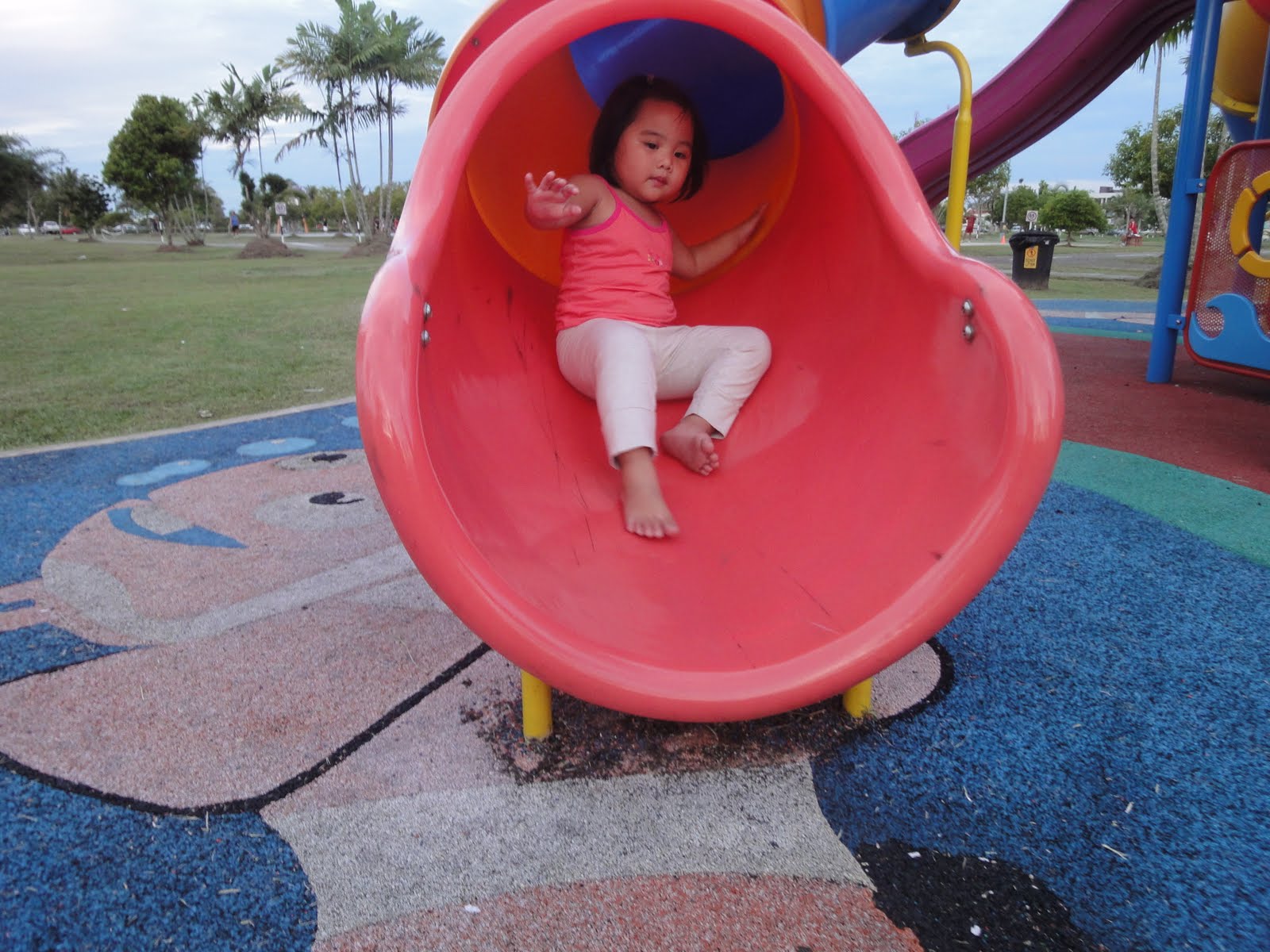 My princess is different. Just see the pics below. She just love the slide. Whenever we drive going to OGDC her face glows knowing that she'll play at the park again.